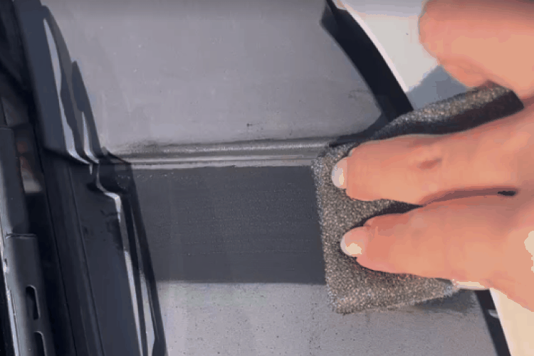 付属のスポンジに2~3回スプレーを吹きかけ、ムラにならないように液剤を塗り込んでください。